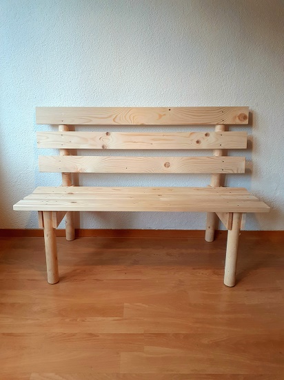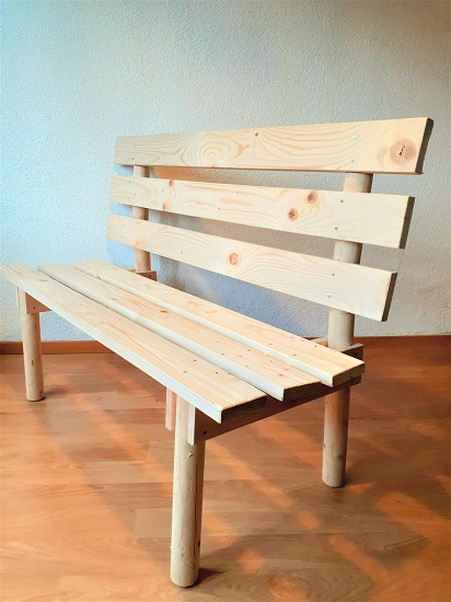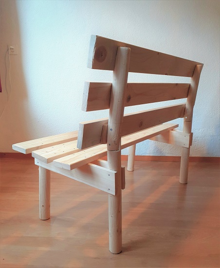Bänkli Einfach, günstig, bequem. 130 cm breit. Für Balkon oder Terrasse, in Wind und Wetter, aber nicht für die Ewigkeit. |