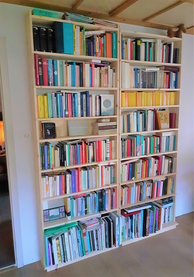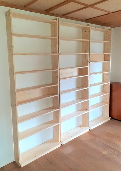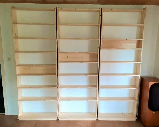 Büchergestell Tablare nicht zu tief, Abstand der Tablare nicht zu gross, leicht und trotzdem stabil, ein Gestell für Bücher halt. |