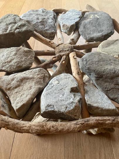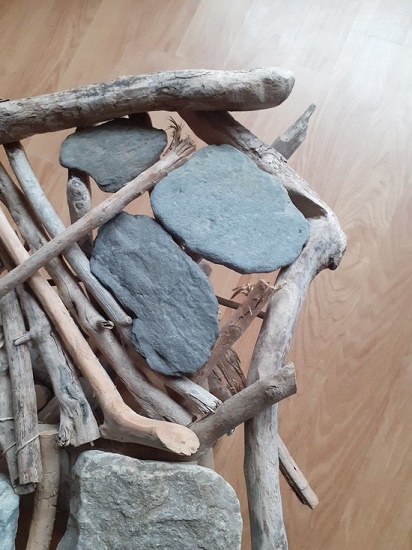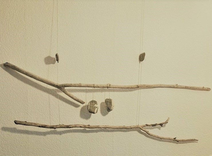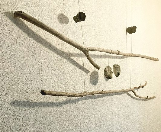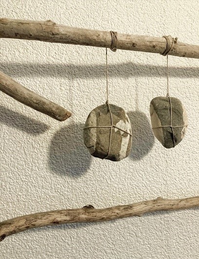 Wanddekoration Zwei Äste, zwei Schnüre, vier Steine … |